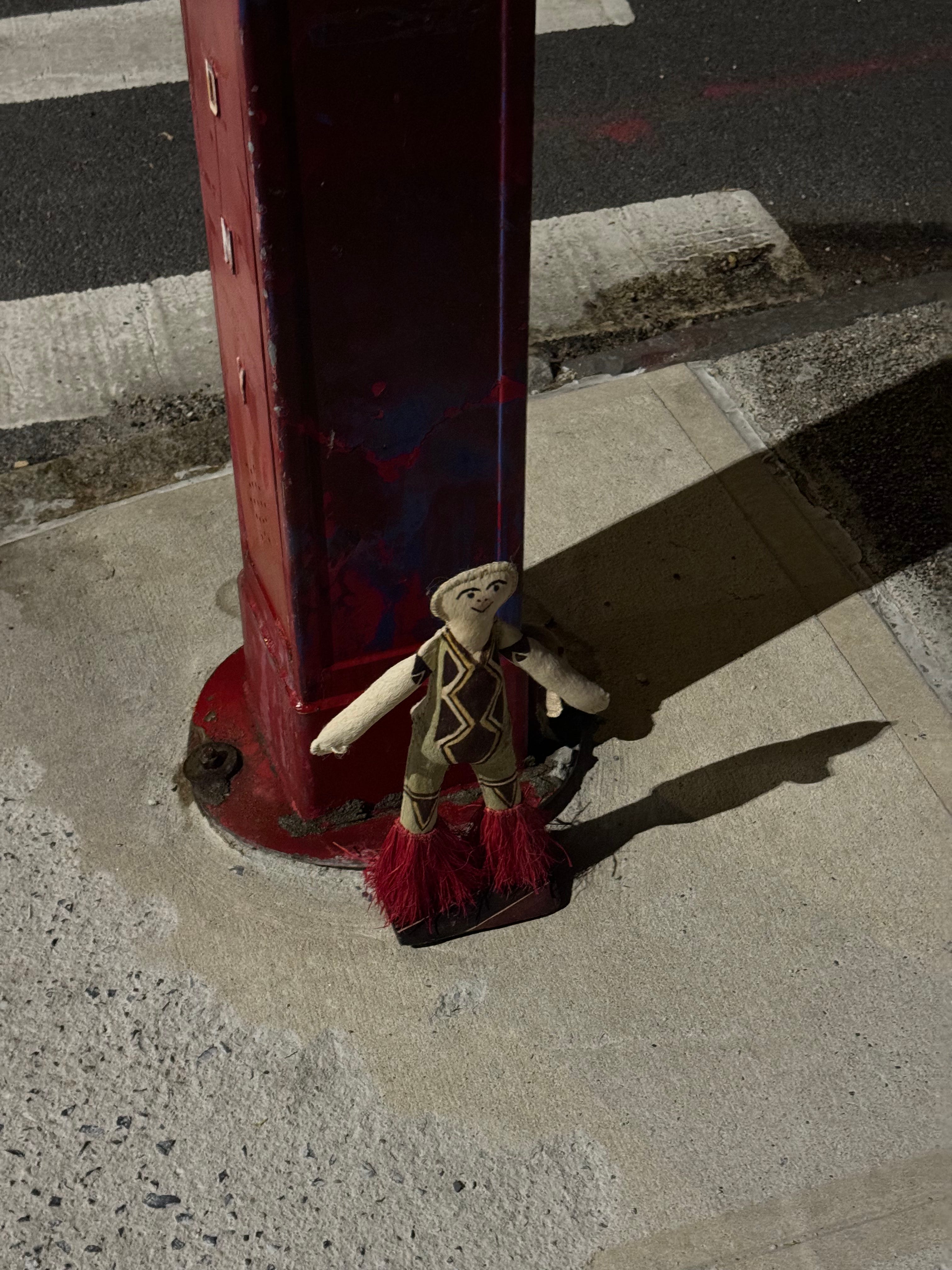 5/1 [redacted] and I found a little statue on the street corner when we were tipsy and Kelsey yelled at me for bringing it home because she thinks it’s an evil spirit. We named him Heim. He lives on the fire escape. (Editor’s note: There are many notes about Heim. Kelsey turned out to be sort of right because Heim did go missing then reappeared, so).